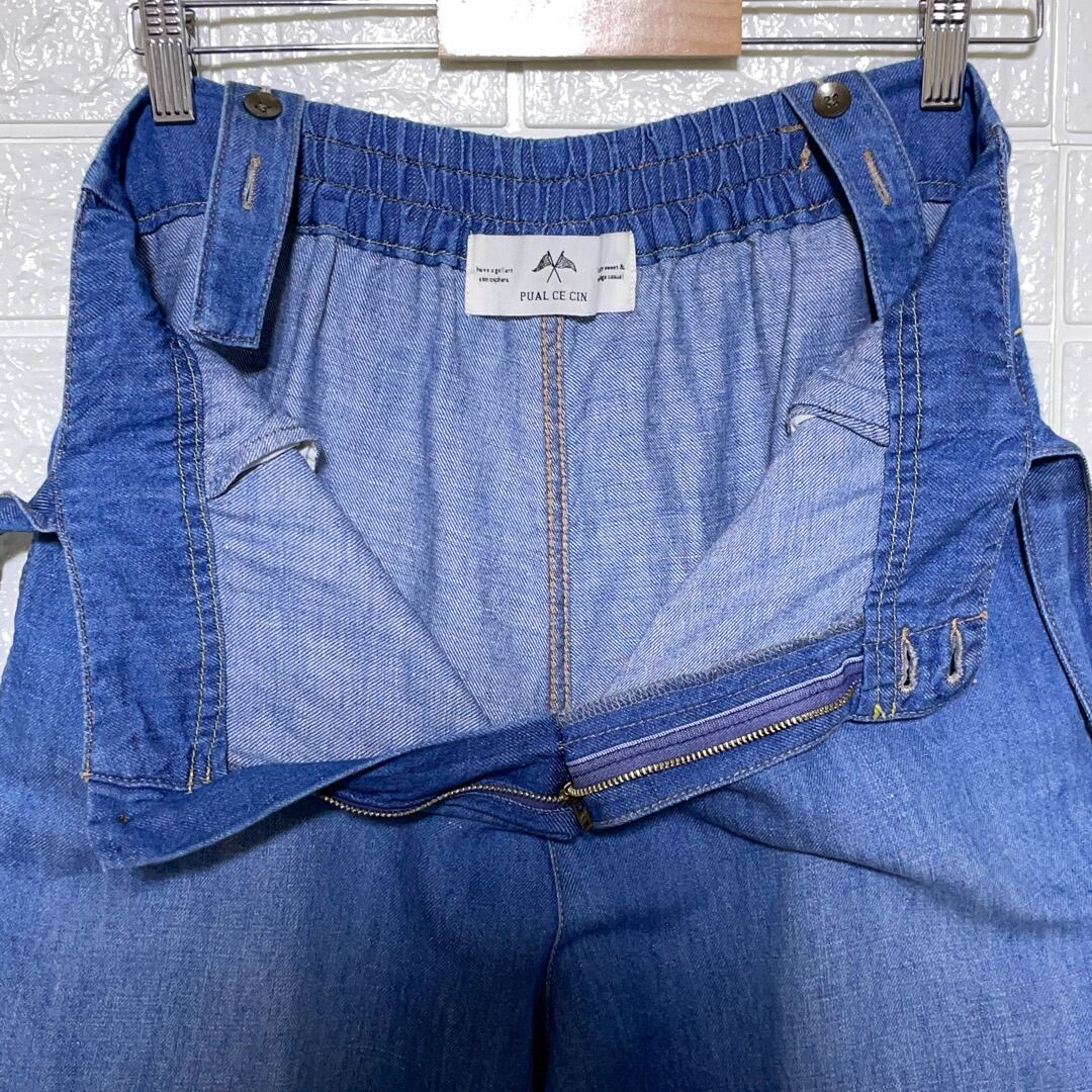 ピュアルセシンの綿麻混デニムを使用したサロペット。
