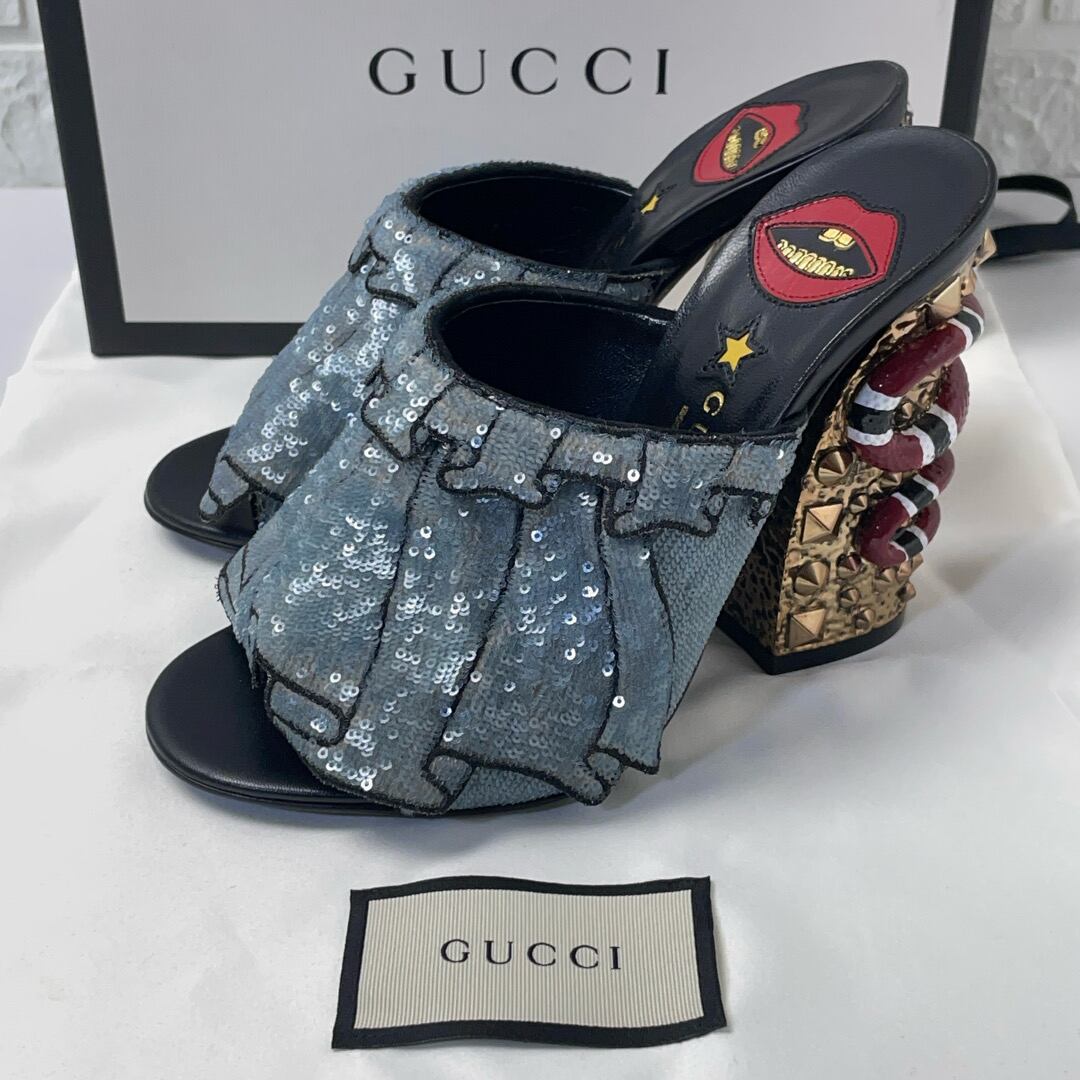 グッチ ミュール スネーク スタッズ スパンコールスカート キスマーク