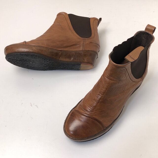 サイドゴアのデザインにより、フィット感抜群で、トレンド感のある一足です。