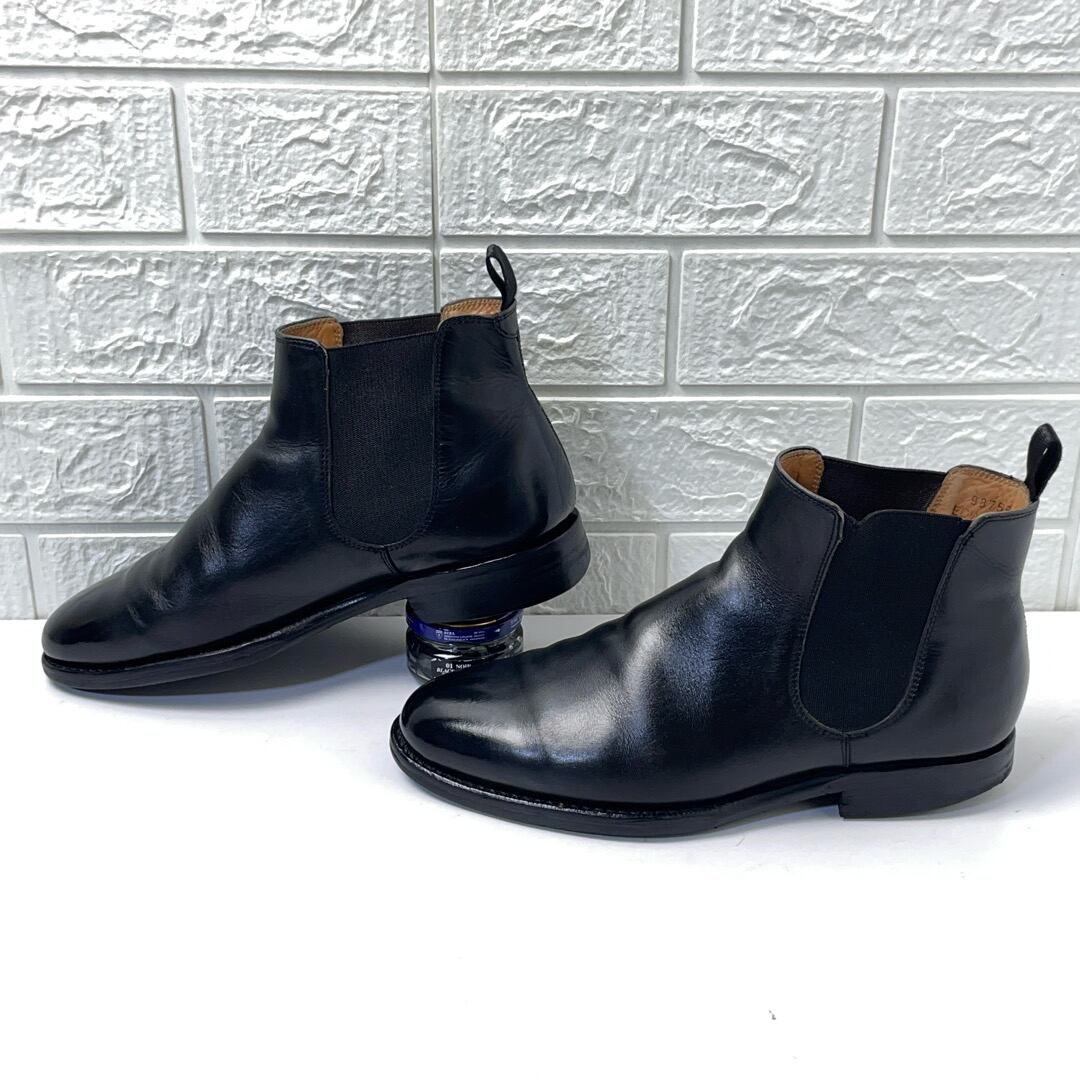 一般的な着用感は見られるものの目立った傷や汚れはなく、比較的きれいです。サービスの一環として靴磨き、トゥとヒールに物が映り込むほどピカピカに、鏡面磨きを施しています。