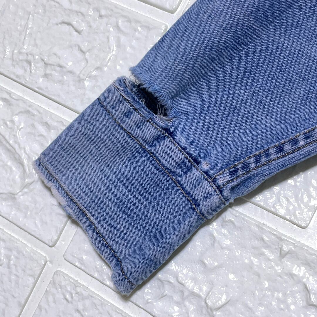 全体的にダメージがあります。そのまま着てもおしゃれですが、柄物の当てたりして着こなすのもおすすめです。