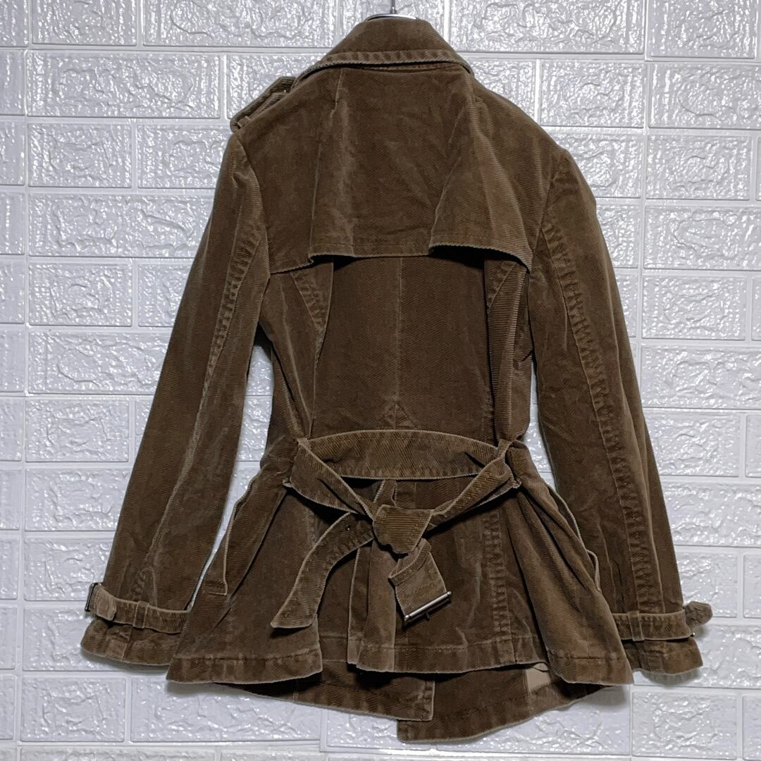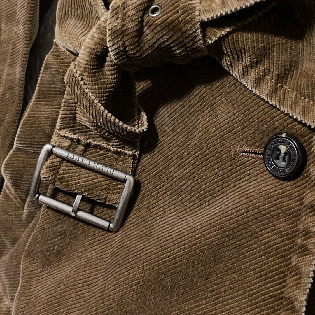 バーバリーブルーレーベルのトレンチコートは、ブラウンの太畝コーデュロイ素材で季節感たっぷりの一着です。