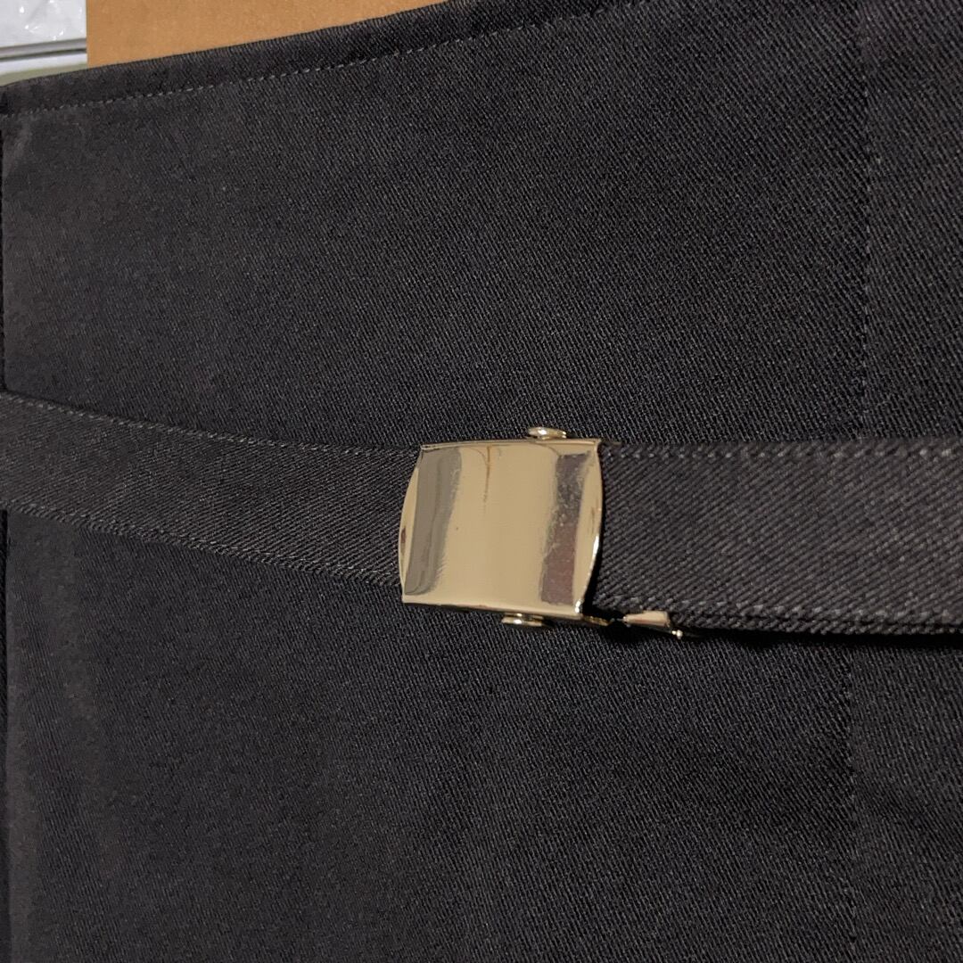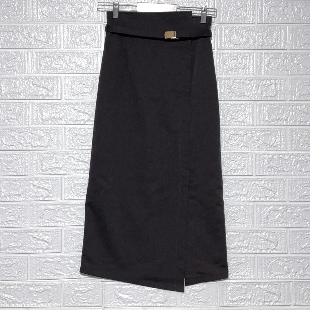 縦のラインを強調してスタイルを美しく魅せ、ゴールドのウエストベルトが上品なアクセントに。