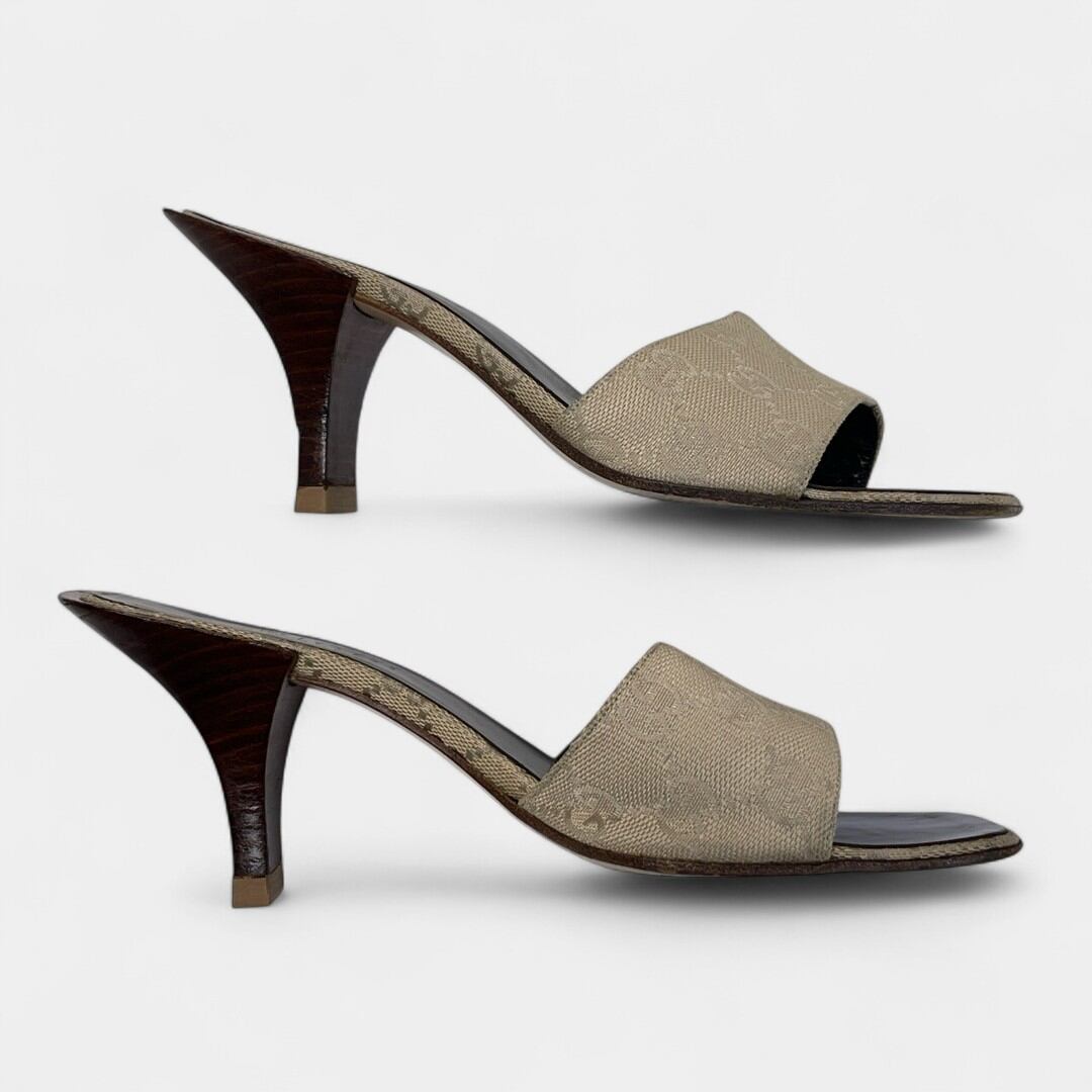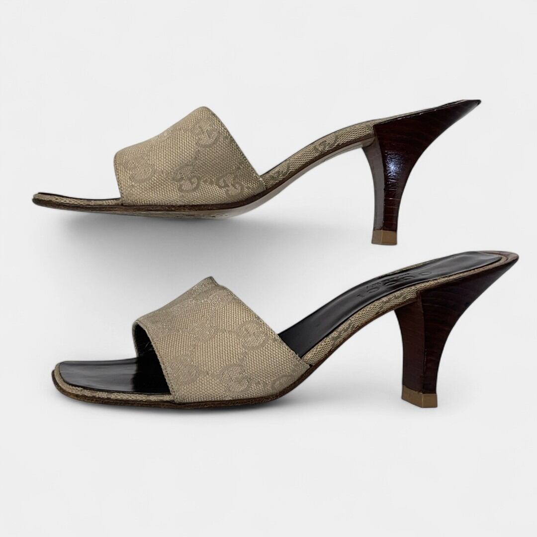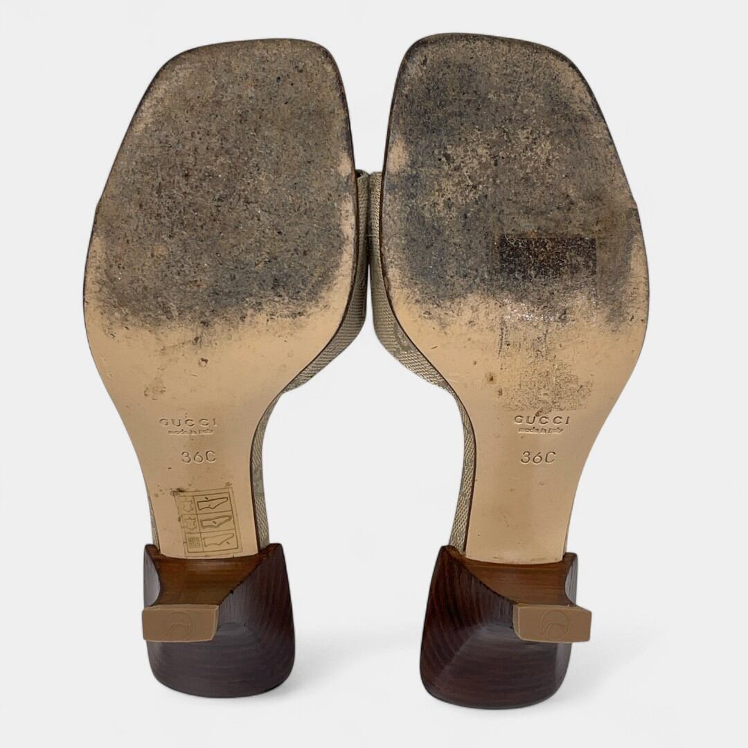 グッチ ミュールサンダル GGキャンバス シマ ベージュ 正規品