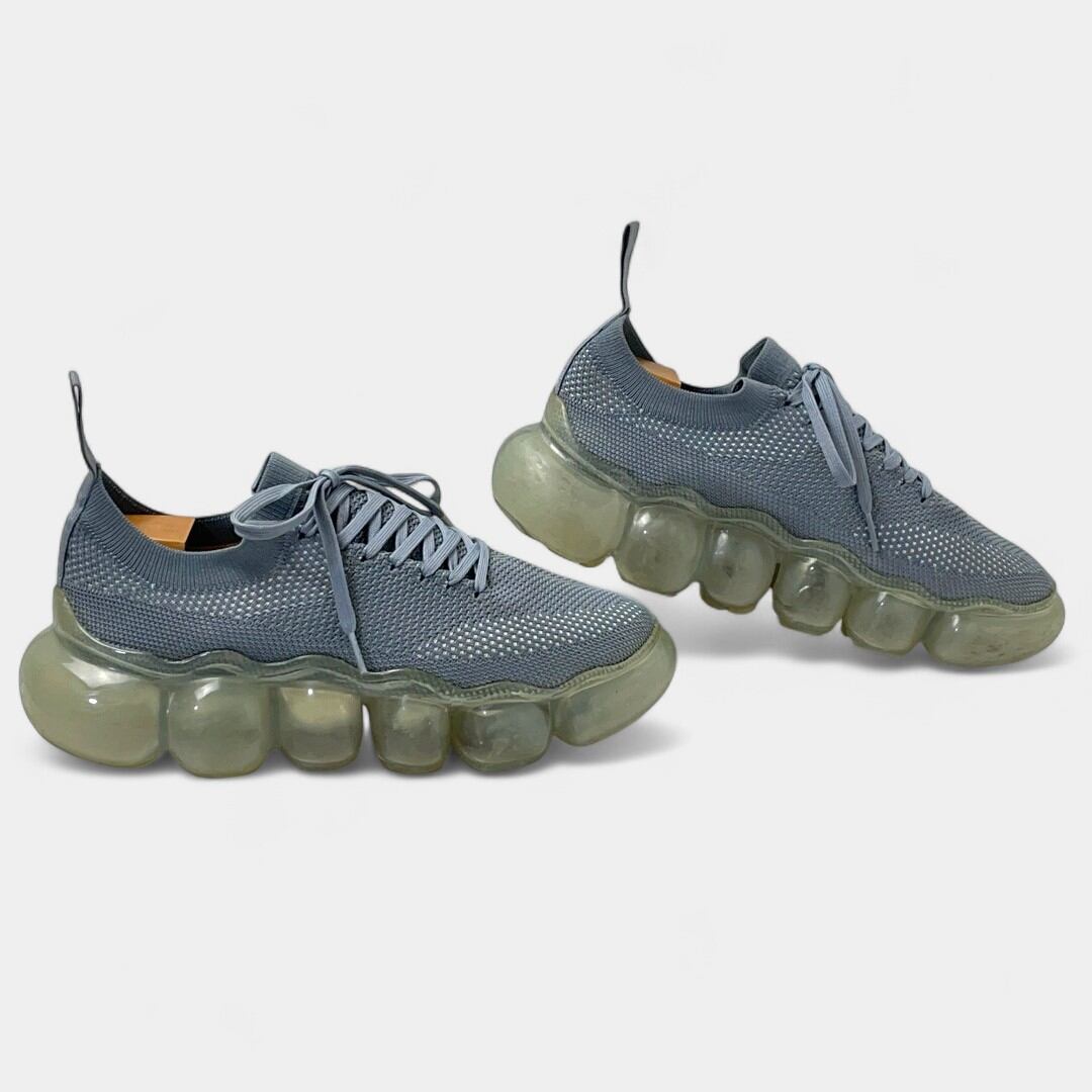 宝石のような透明球体で構成された厚底クリアソールが歩くたびに柔らかく動き、独特のクッション性とグリップ感を提供するスニーカーは、ミニマルなニットアッパーと約5cmヒールで、ボリューム感を保ちつつ軽やかな印象を演出します。