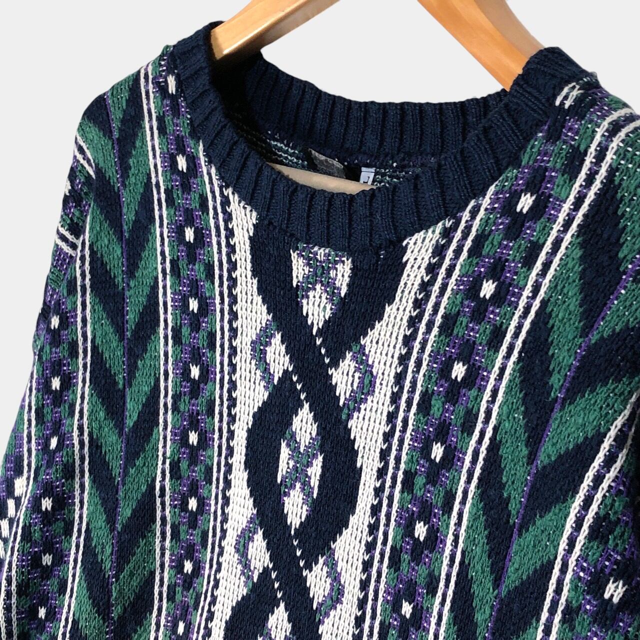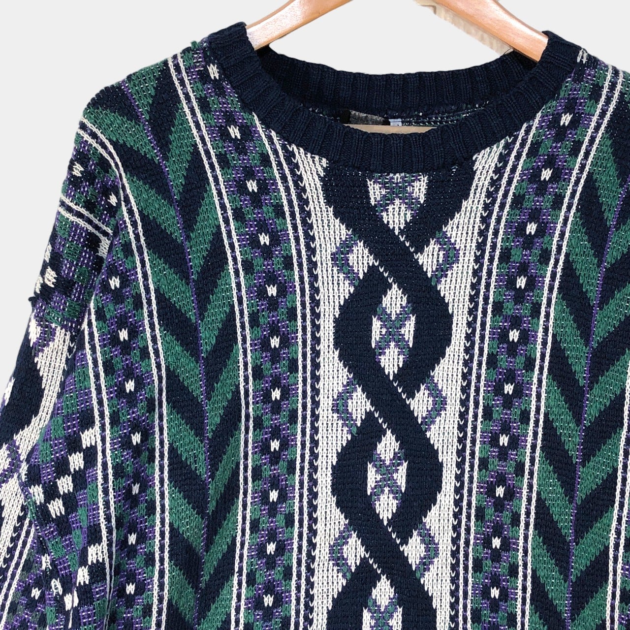 【個性派オーバーサイズで楽しむ総柄ニット】