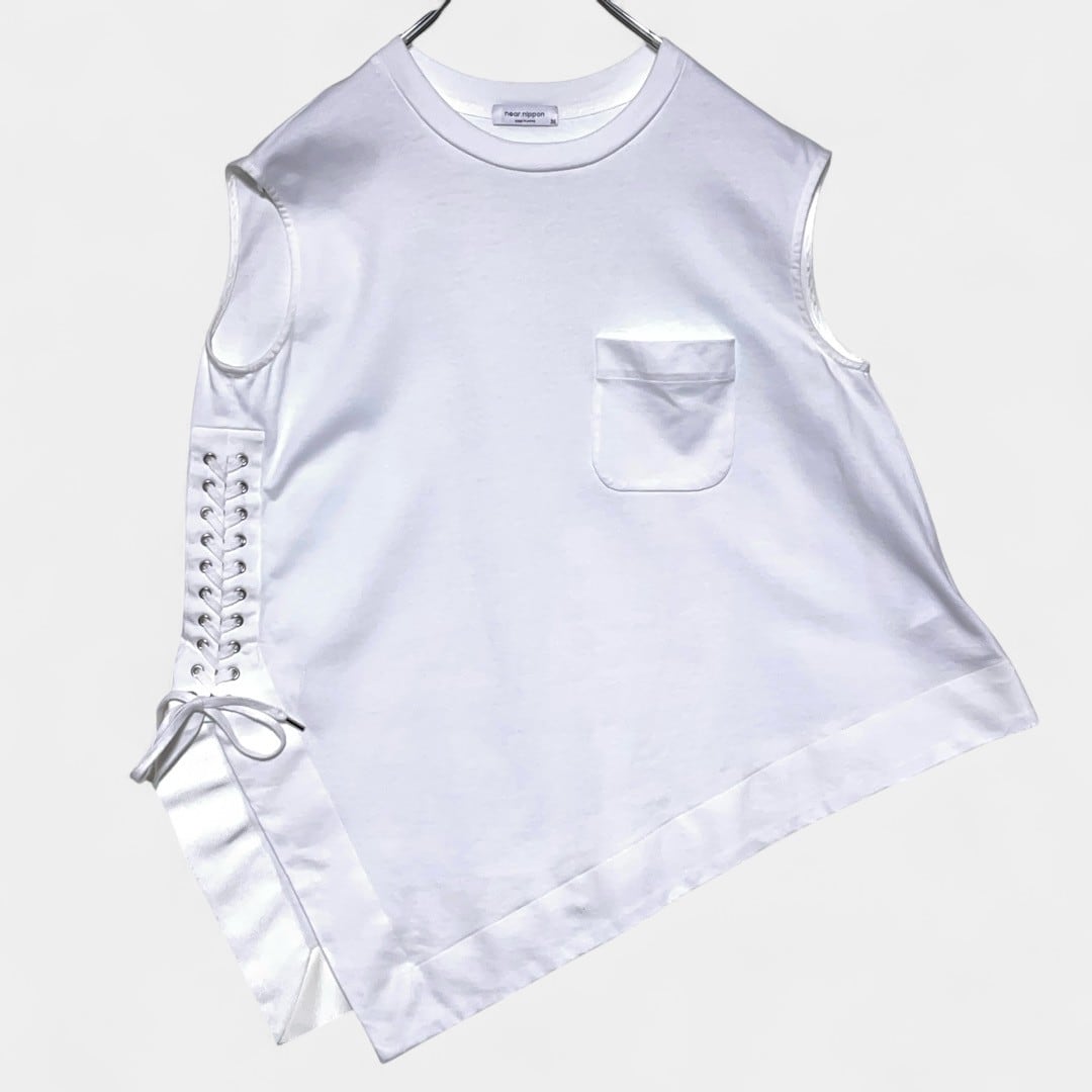 ニアーニッポン ノースリーブTシャツ サイドレース ポケット アシンメトリー