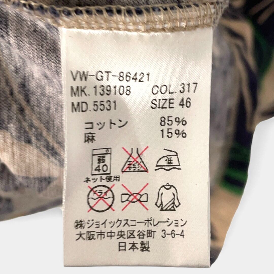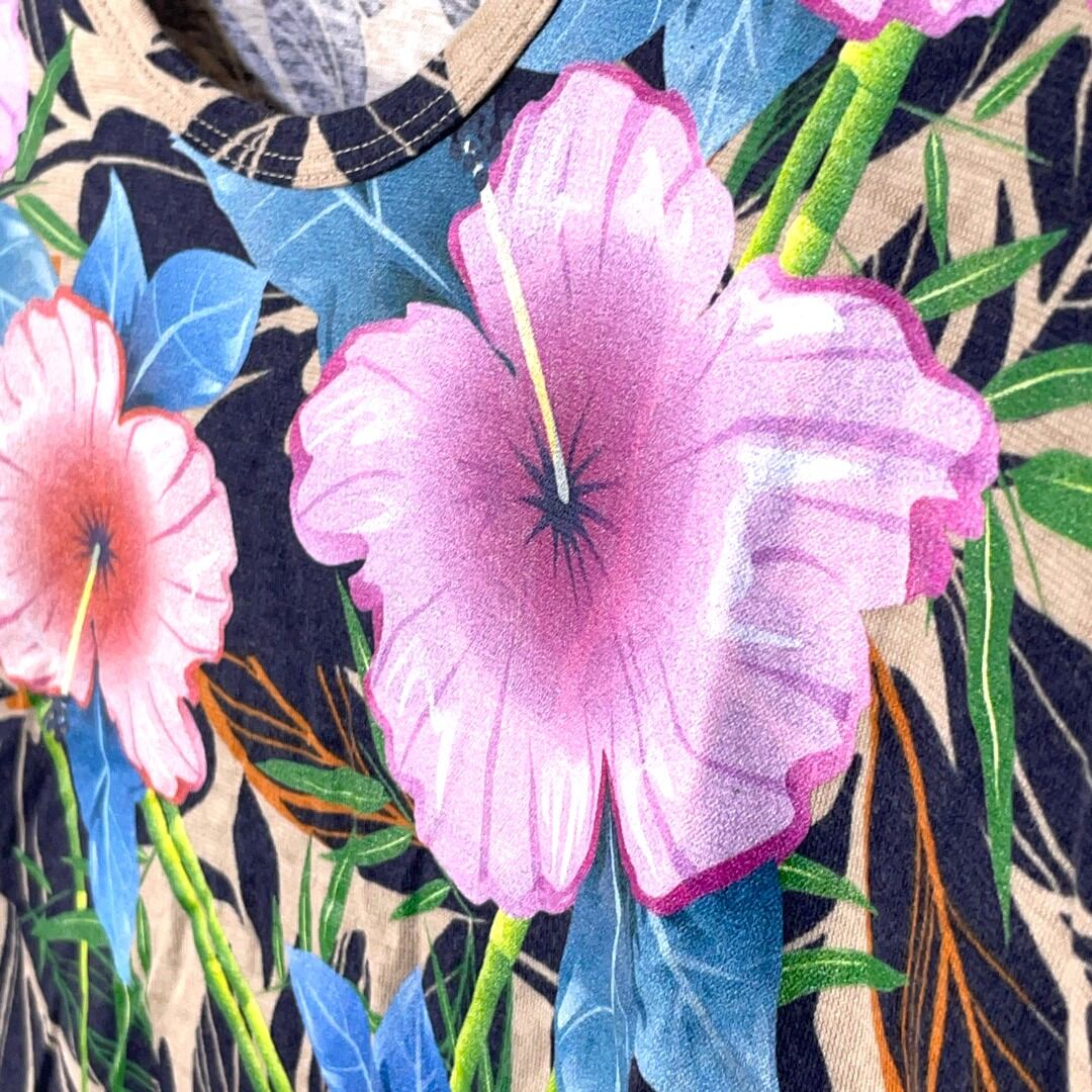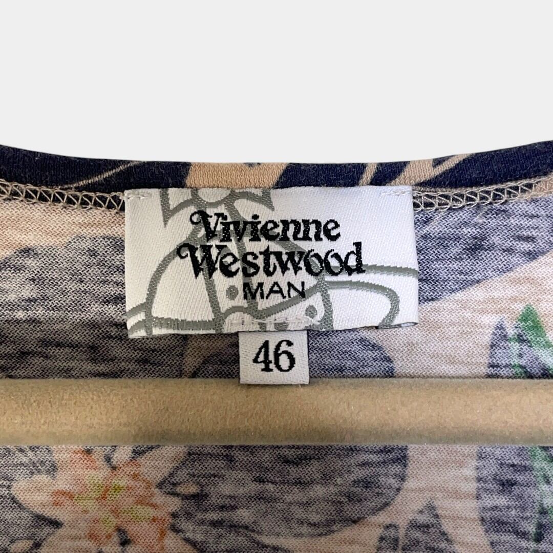 ヴィヴィアンウエストウッドマン ベージュ 花柄 ハイビスカス オーブ リネン混 7部袖Tシャツ