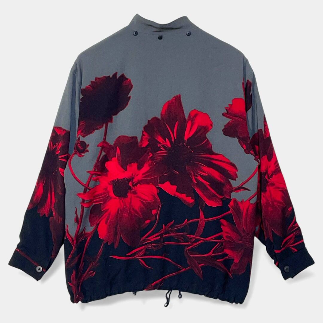 グレー レッドフラワー 花柄 総柄 スタンドカラー ブルゾン