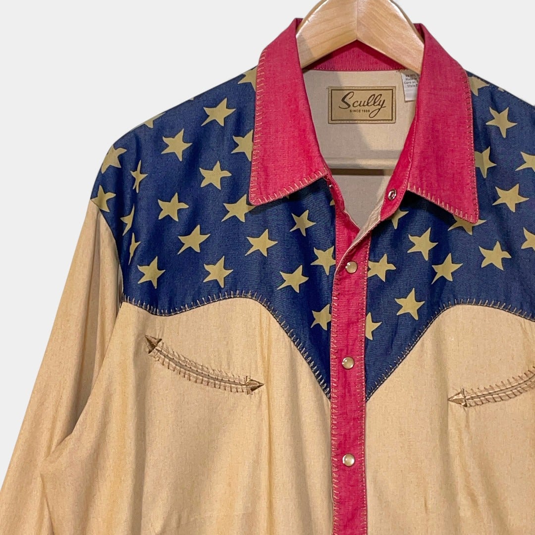 スカリー ベージュ 星条旗 アメリカンフラッグ ピックステッチ ウエスタンシャツ