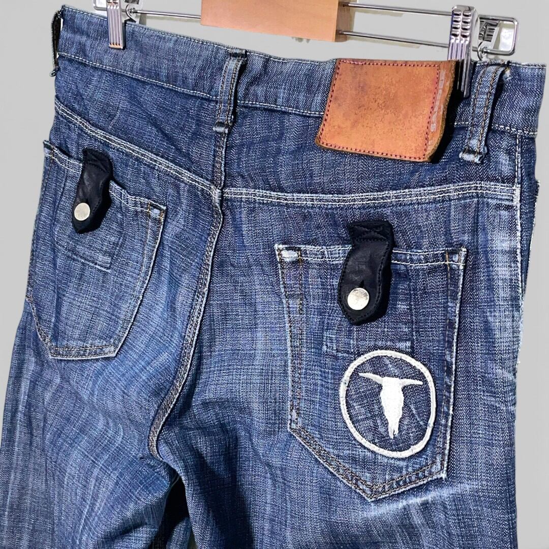 ジルサンダー ジーンズ ボタンフライ レザーパッチ スカル 刺繍 日本製 本人期