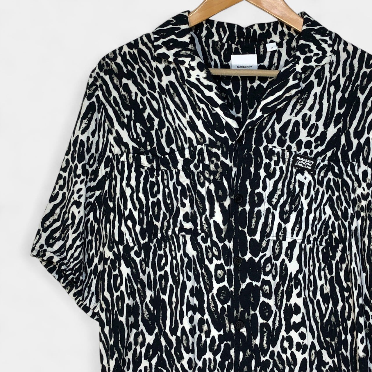バーバリーロンドン 半袖シャツ 現行 レオパード ロゴパッチ レーヨン