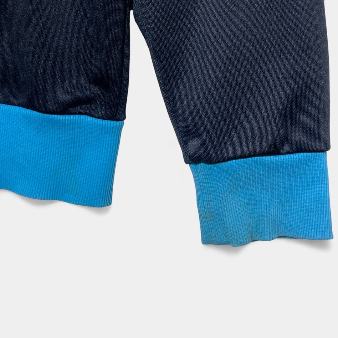 クージーとプーマのコラボによるトラックジャケットは、水色とブラックの配色に立体的な編込みが映える特別な一着です。