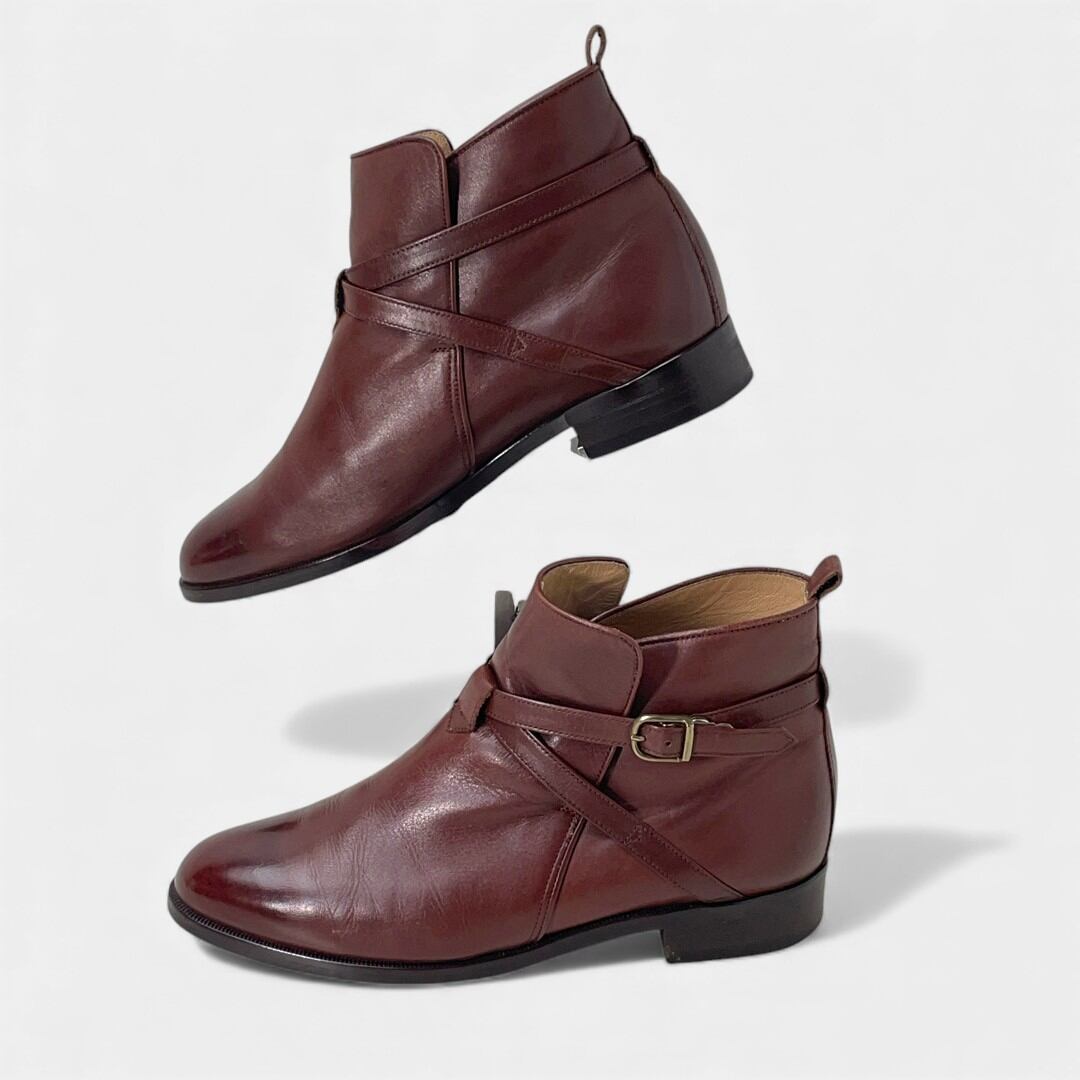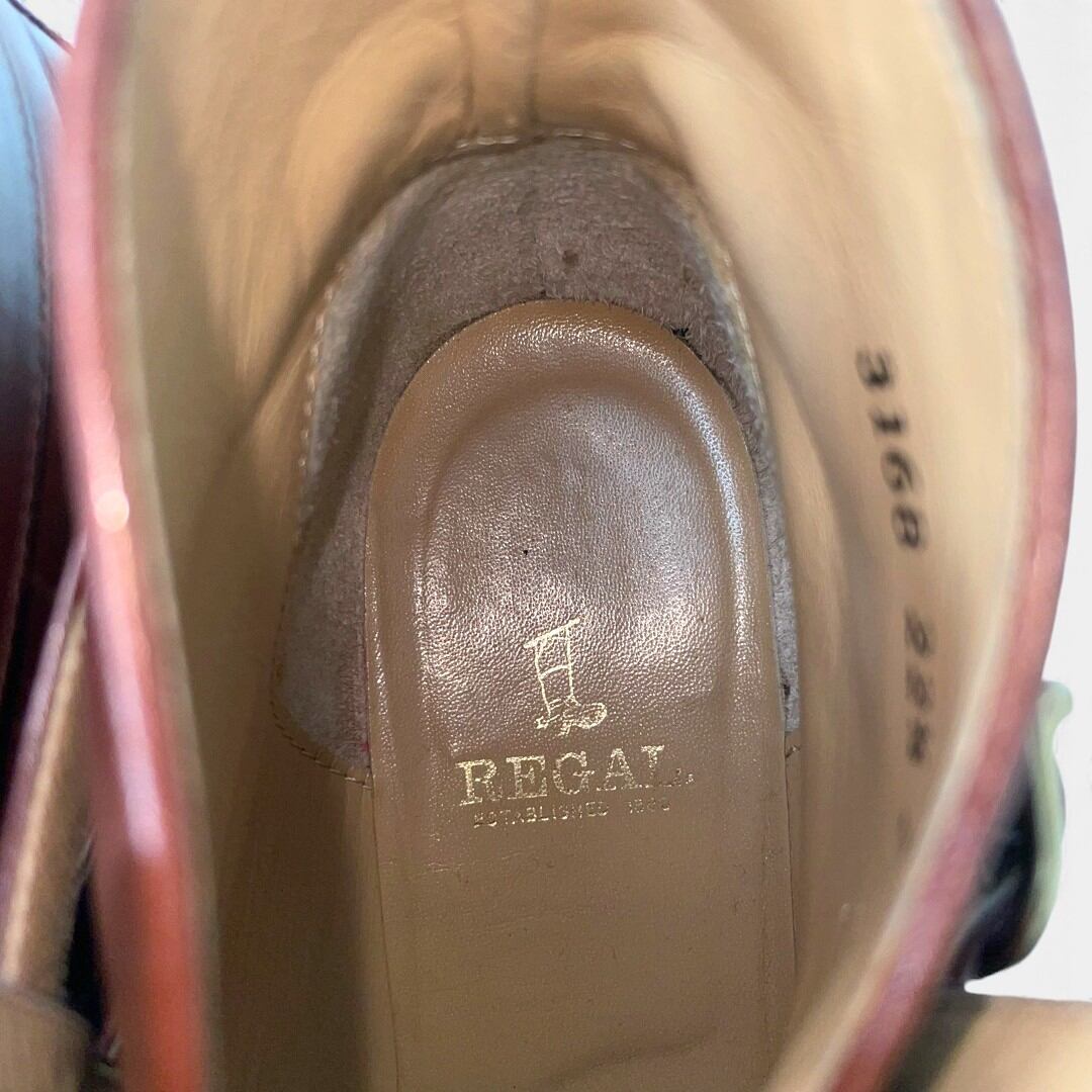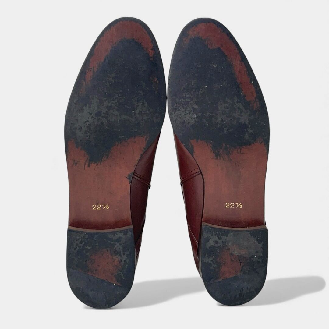 一般的な着用感は見られるものの目立った傷や汚れはなく、比較的きれいです。サービスの一環として靴磨き、トゥとヒールに物が映り込むほどピカピカに、鏡面磨きを施しています。