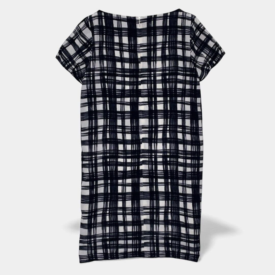 ホワイトとブラックを基調とした手書き風チェックが特徴のワンピースです。