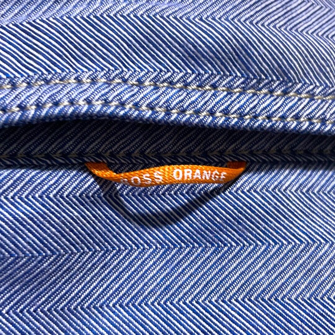ヒューゴボス ブルー ヘリンボーン 長袖シャツ