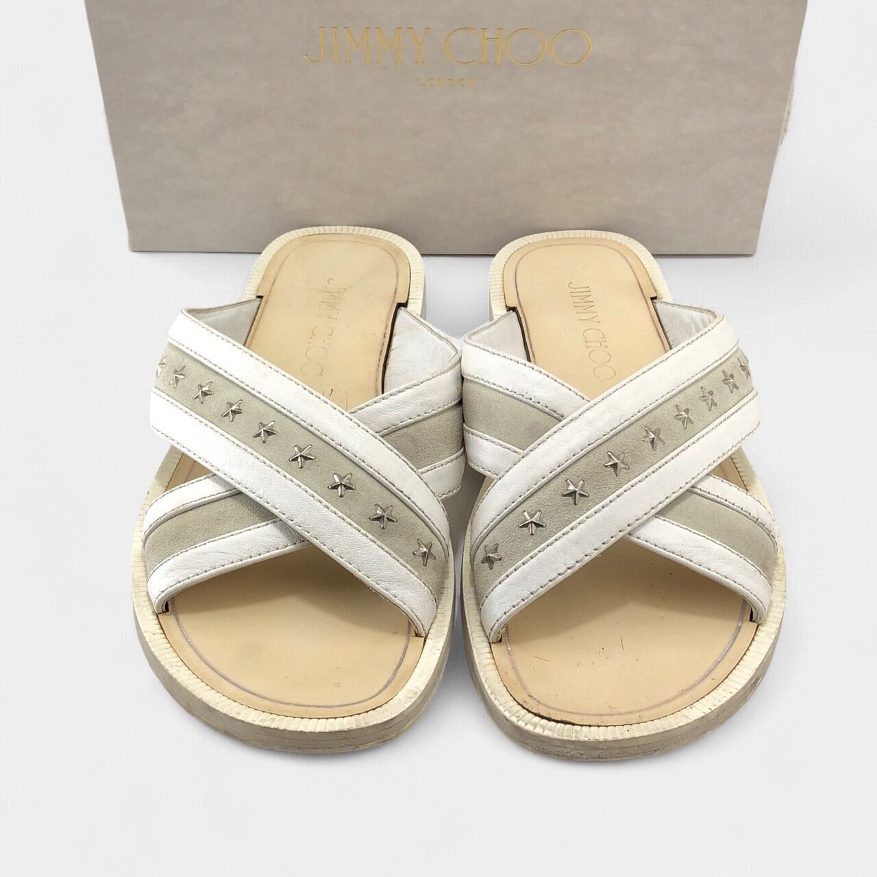 ジミーチュウ クロスサンダル ホワイト スタースタッズ