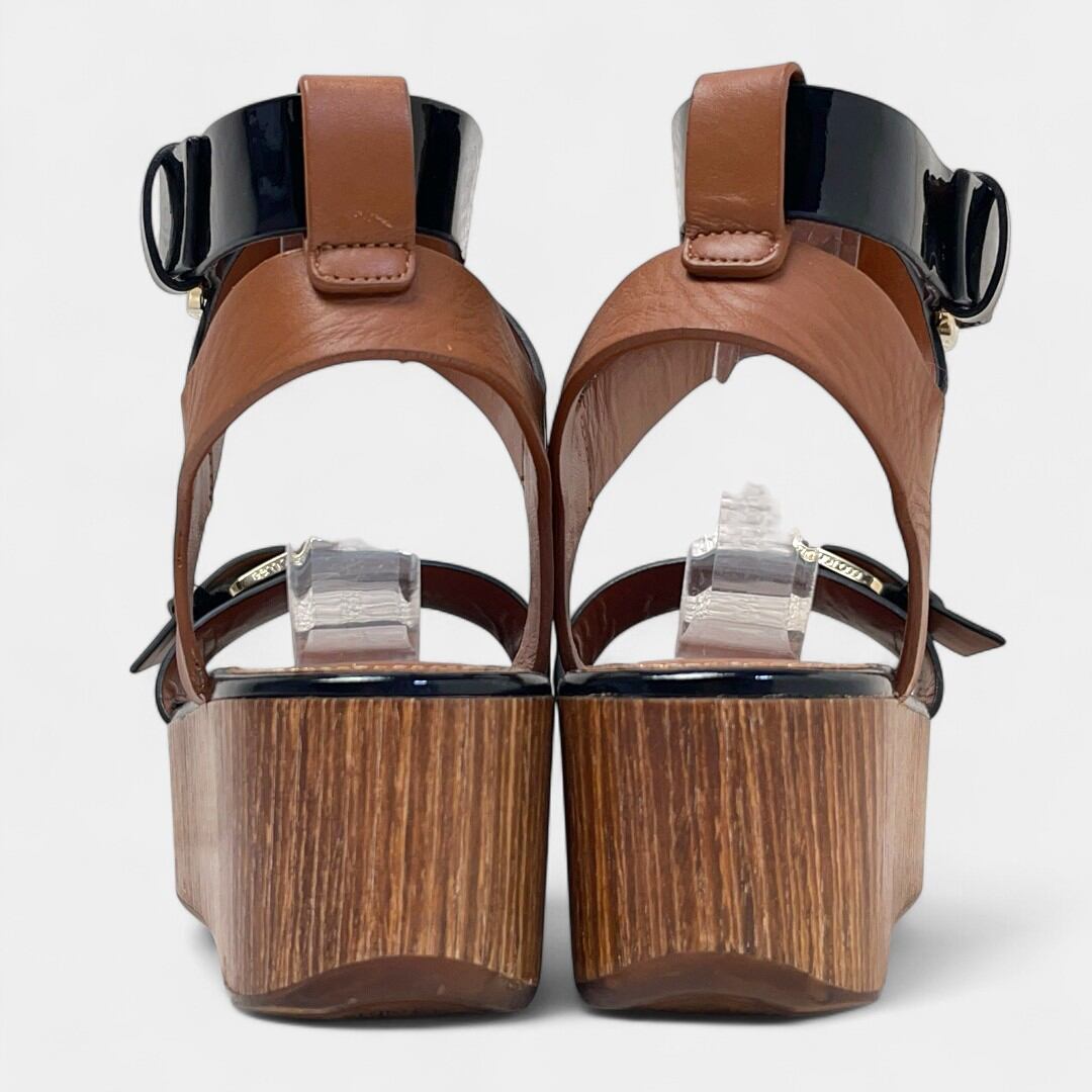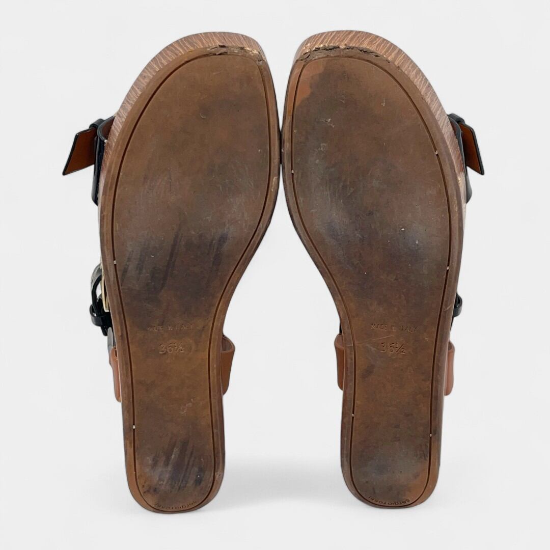 セルジオロッシ サンダル 厚底 エナメル ブラック ブラウン