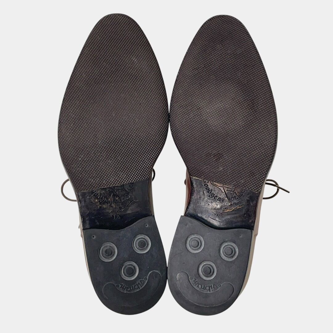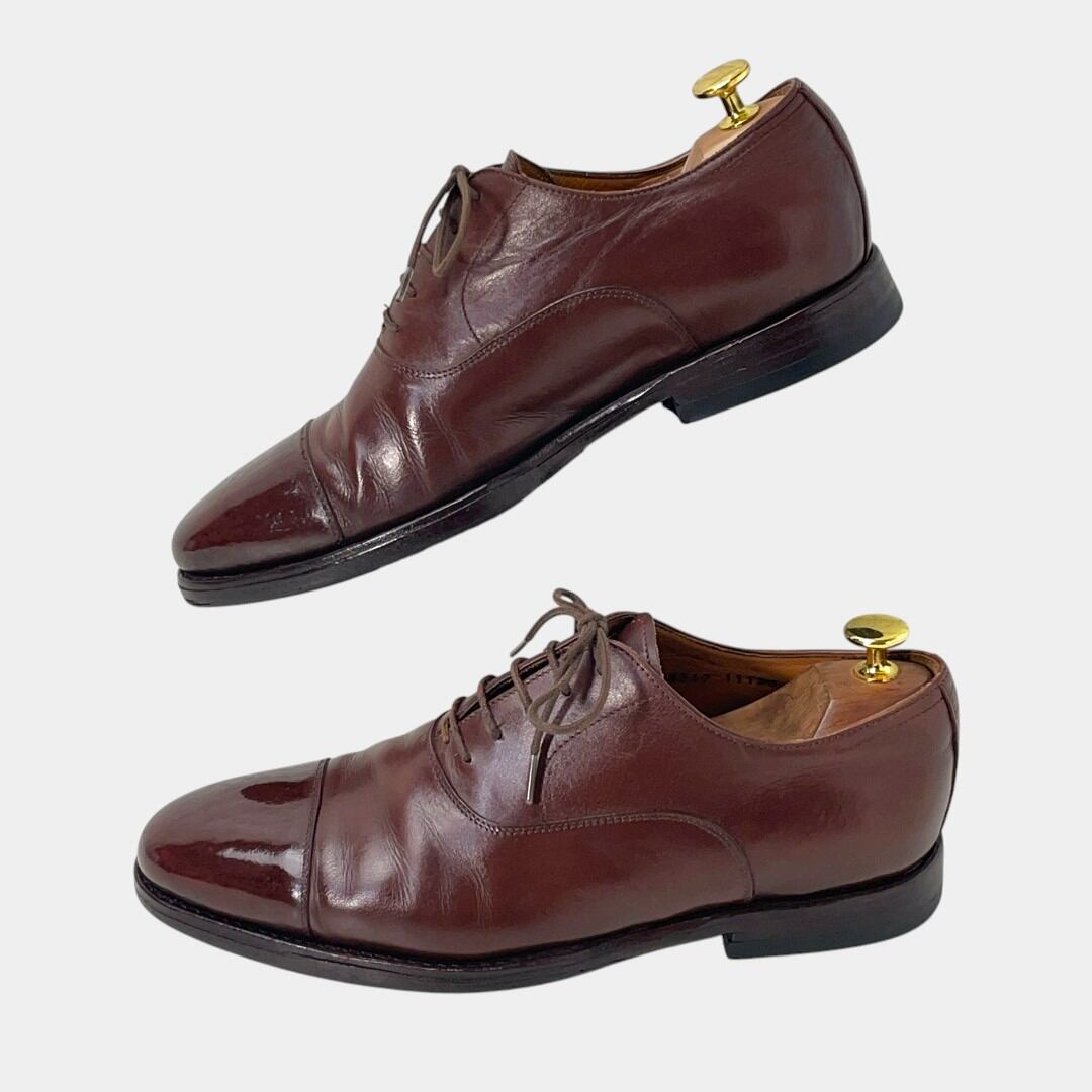一般的な着用感は見られるものの目立った傷や汚れはなく、比較的きれいです。サービスの一環として靴磨き、トゥとヒールに物が映り込むほどピカピカに、鏡面磨きを施しています。