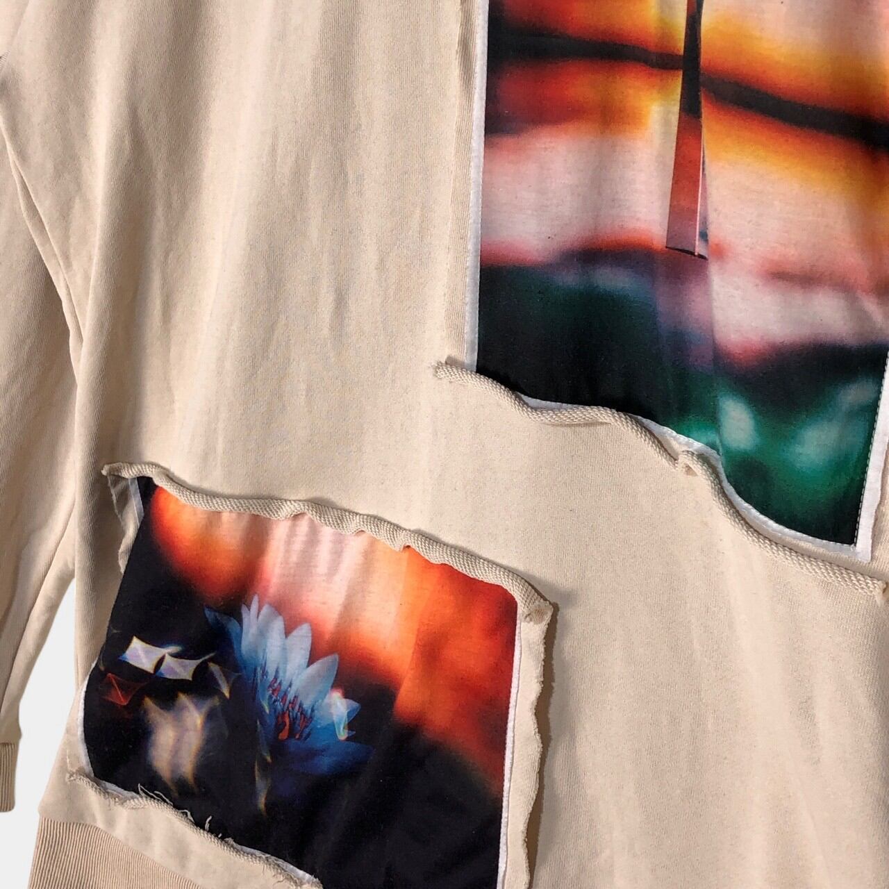 オリジナルの転写プリントグラフィックを切り貼りして仕上げたアイテム。