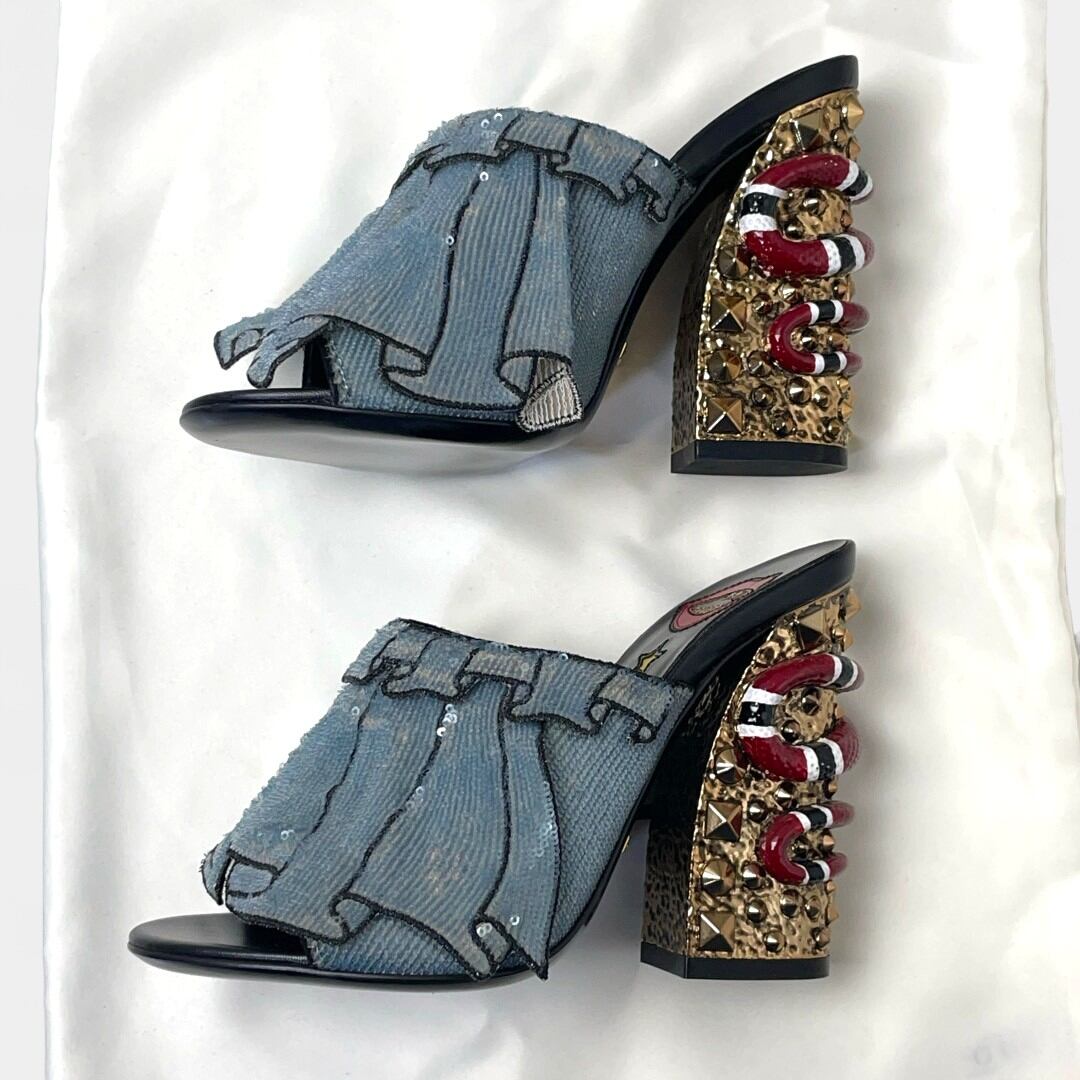 グッチ ミュール スネーク スタッズ スパンコールスカート キスマーク